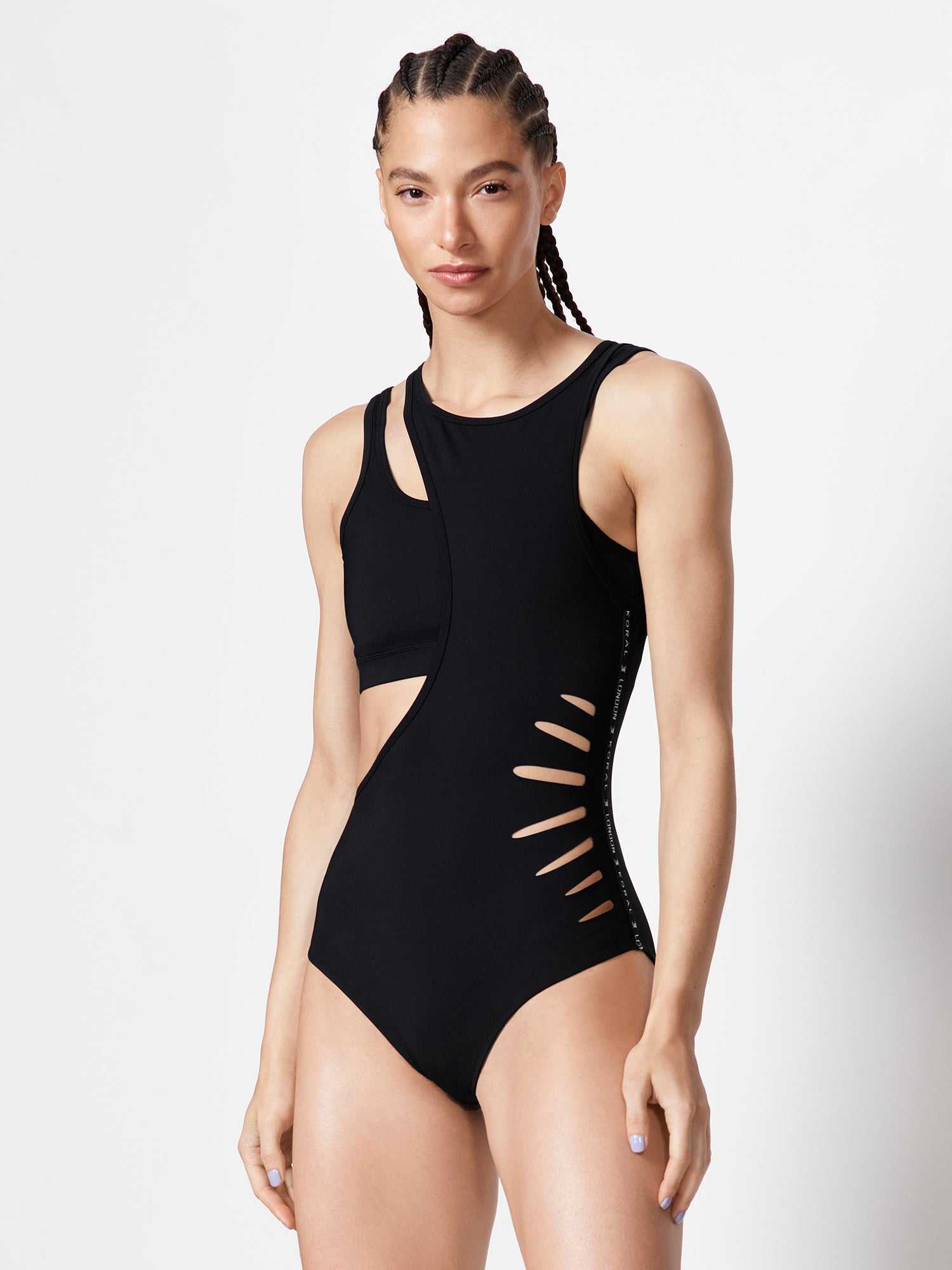 This racerback bodysuit is full of intricate detail, from the asymmetrical silhouette to the sexy side cutout. Style it with denim, leather leggings or a mini skirt for a comfortable yet chic night out. Fits true to size, take your usual Koral sizing Recommended for Athleisure Performance