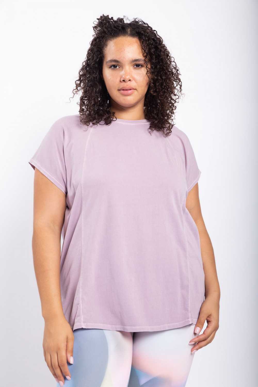 Breathable and durable, this tee should be a staple in every wardrobe. It was constructed from pima cotton (with a bit of spandex added) and features swoop sleeves (a cross between Dolman and Raglan) and a notch on each side.